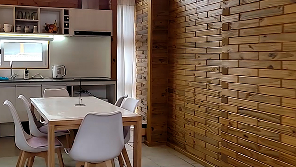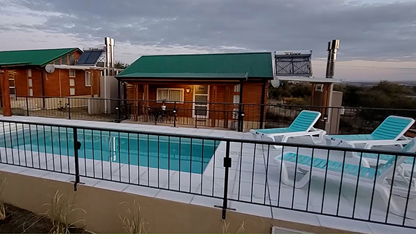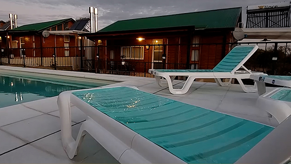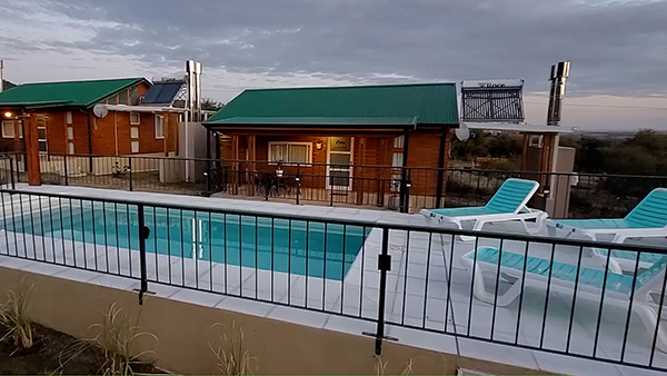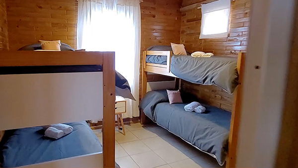 El complejo tiene 6 (seis) cabañas con capacidad para 6 (seis) personas c/u, distribuidas en camas cuchetas, cama matrimonial con sommier, baño privado, secador de pelo, Televisión LED DIRECTV, aire acondicionado frío/calor, servicio de ropa de cama (toallas, sabanas, frazadas) heladera bajo mesada, pava eléctrica, vajilla (platos, vasos, ollas, sartén, cubiertos, tabla, cubiertos), cocina anafe, parrilla por cabaña.